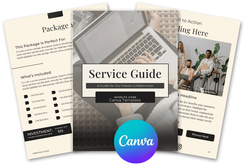 A fully customizable Canva template to professionally showcase your services without hiring a designer. Put your best foot forward — even on a budget.